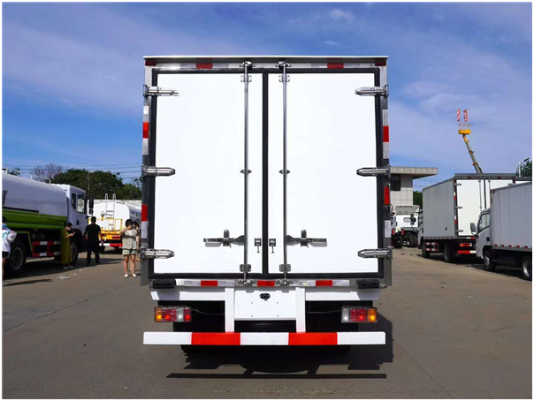 四、選裝配置:導軌肉鉤、T型通風槽、右側開側門、溫度實時監控帶打印裝置、裝海鮮廂體內部面料必須選裝不銹鋼制造、可選裝12V-24V外接電源(車輛在停止時,廂體通過外接電源進行制冷)。